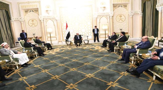ووضع الرئيس الجميع أمام المستجدات التي انبثقت عن لقاءاته ومشاوراته خلال الفترة المنصرمة ومنها لقاءه بالمبعوث الأممي مارتن غريفيت وتأكيده الدائم على السلام المرتكز على تنفيذ القرارات الأممية وفي مقدمتها القرار ٢٢١٦.